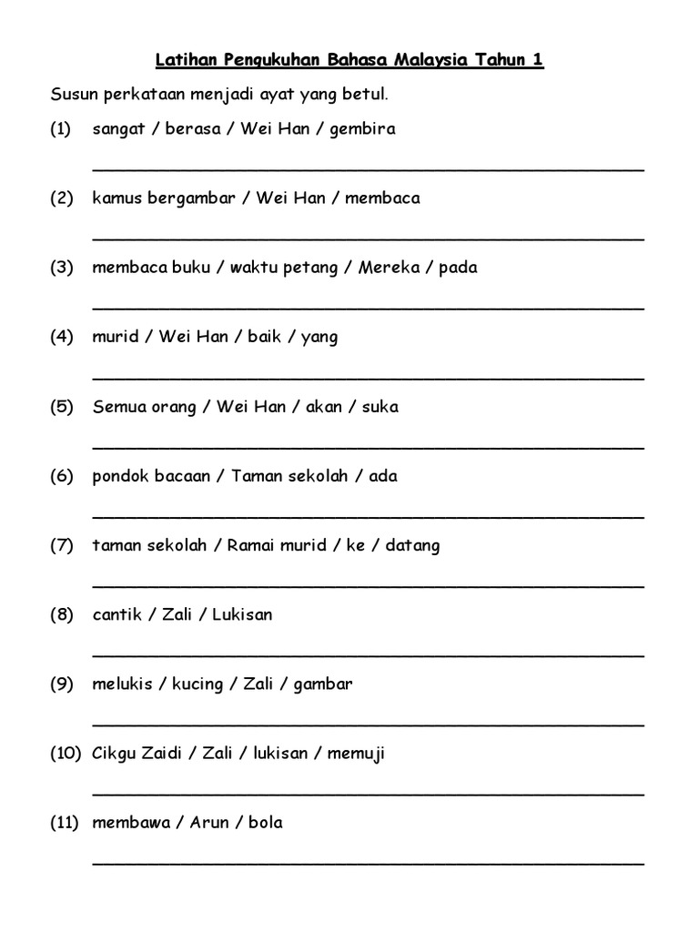 Latihan Pengukuhan Bahasa Malaysia Tahun 1