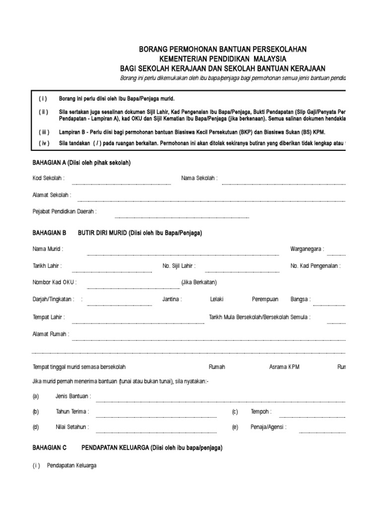 Doc Borang Bantuan Rm100 Wan Bulu Academia Edu