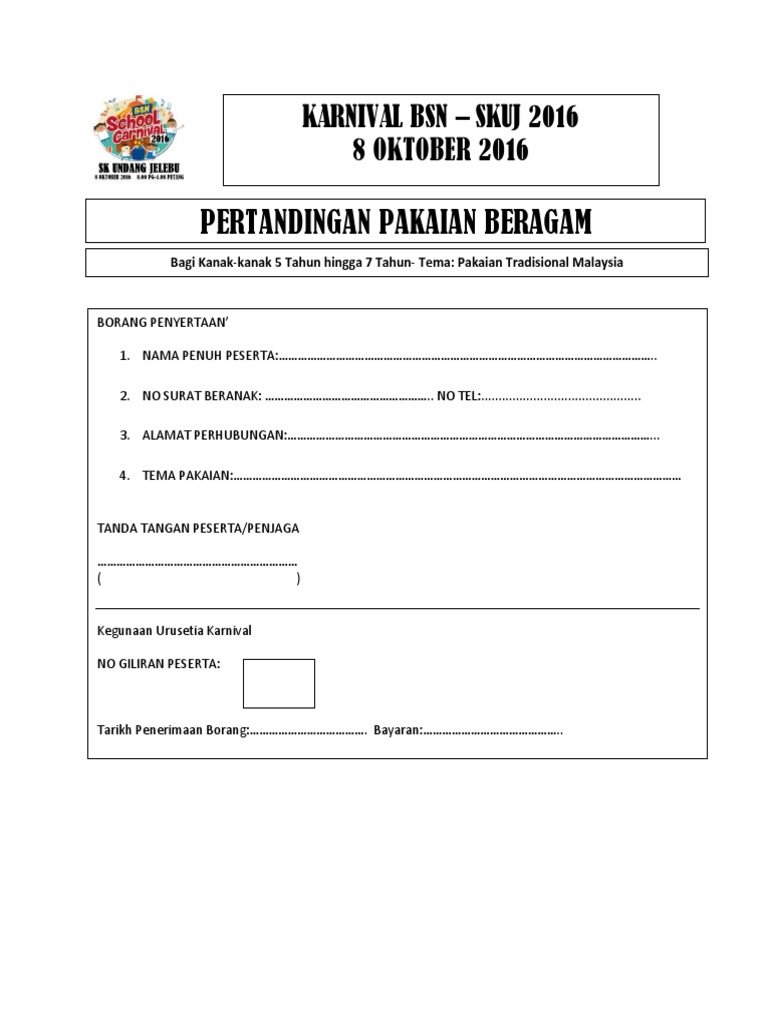 Borang Penyertaan Pakaian Beragam Pdf