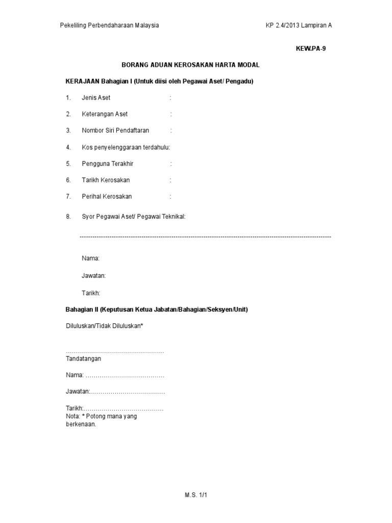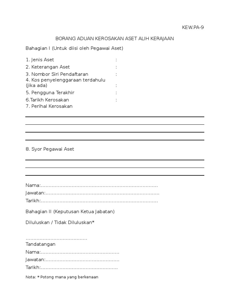 Kew Pa 9 Borang Aduan Kerosakan Aset Alih Pdf Google Drive