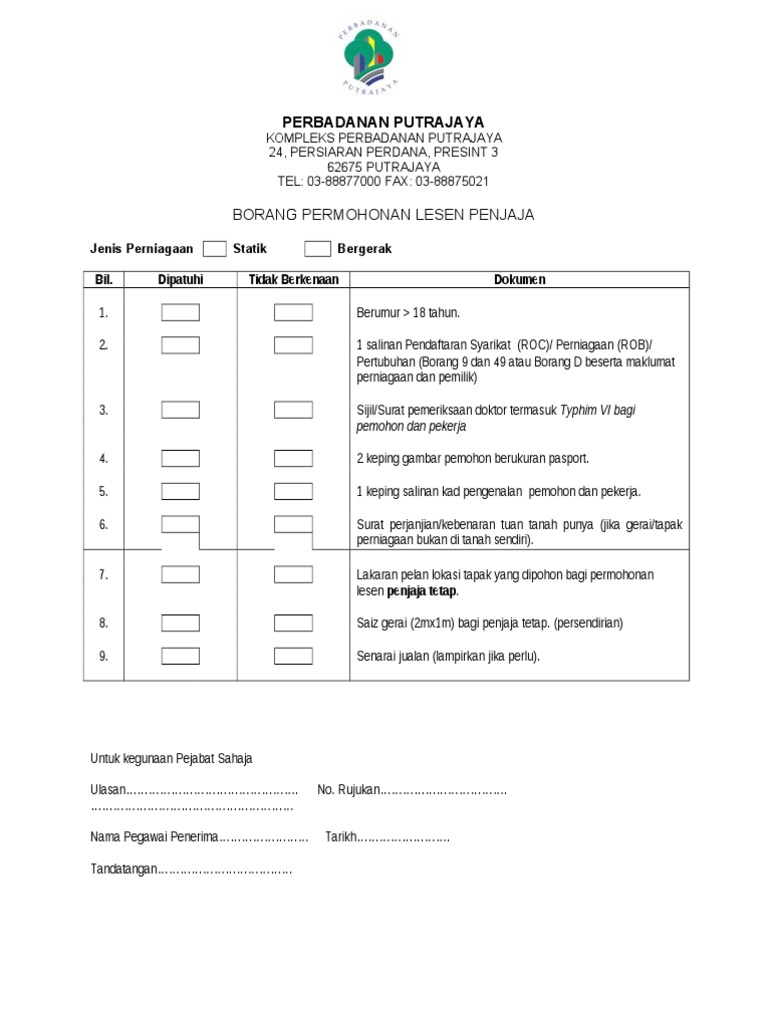 Borang Permohonan Lesen Perniagaan Putrajaya