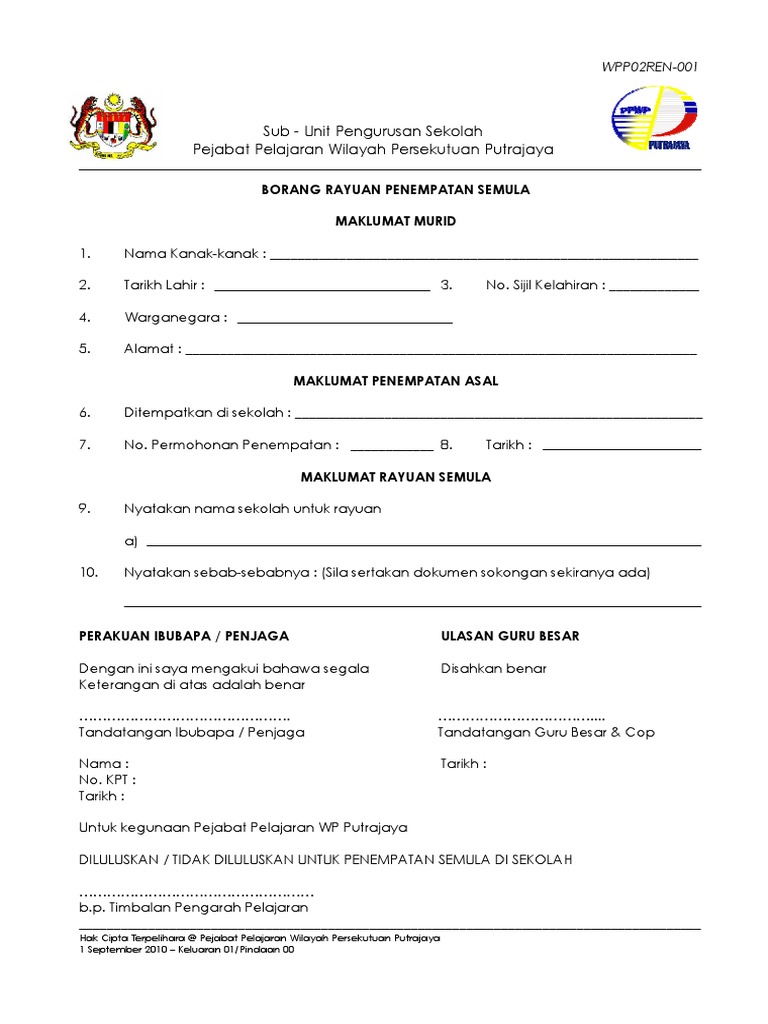 Borang Rps Rayuan Penempatan Semula