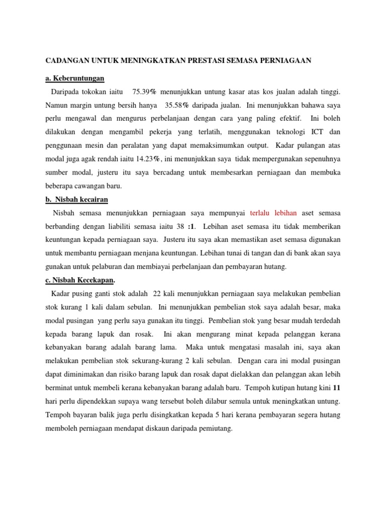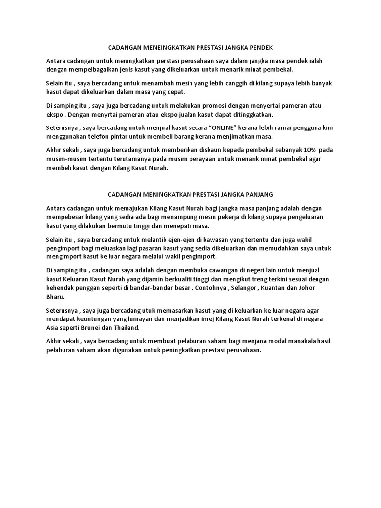 Cadangan Untuk Meningkatkan Prestasi Semasa Dan Jangka Panjang Perniagaan
