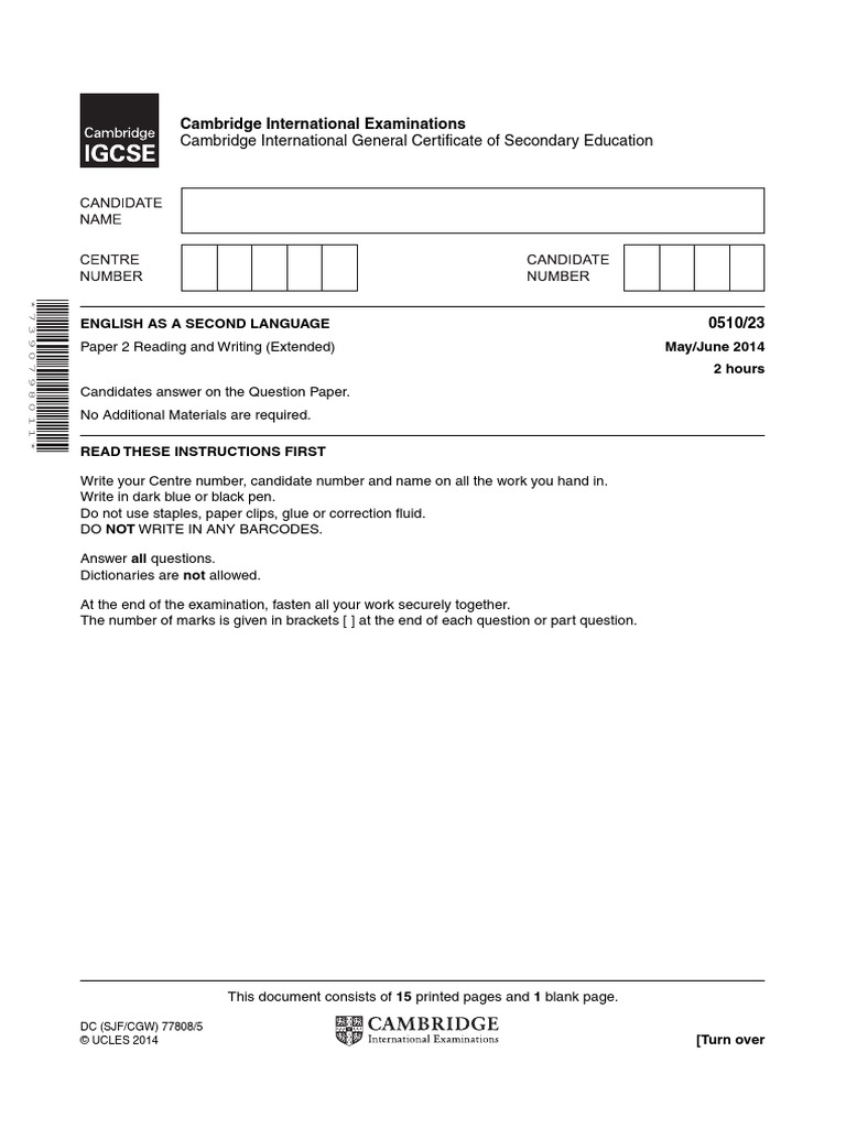 Cambridge Igcse English As A Second Language Practice Tests English As A Second Language Cambridge University Press