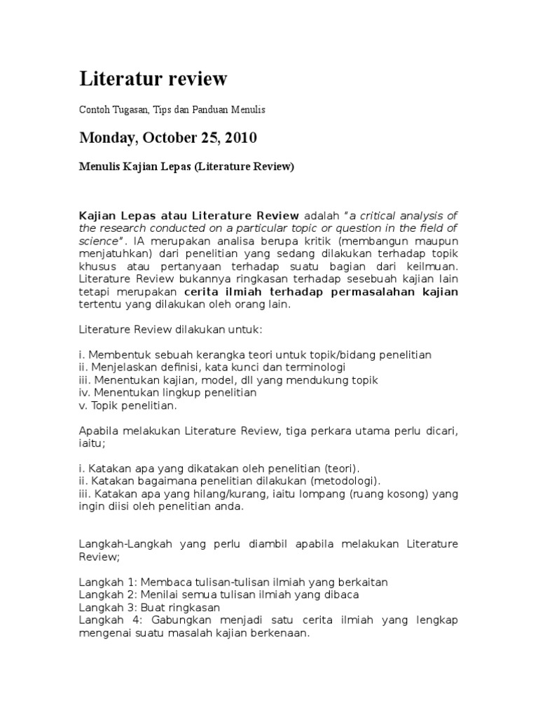 Kajian Lepas Atau Literature Review Adalah