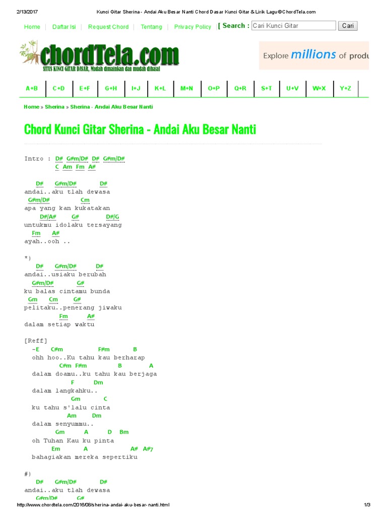 Kunci Gitar Sherina Andai Aku Besar Nanti Chord Dasar Kunci Gitar Lirik Lagu C Chordtela