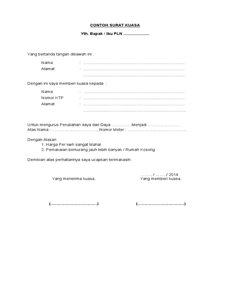 Contoh Surat Kuasa Daya Listrik Download Kumpulan Gambar
