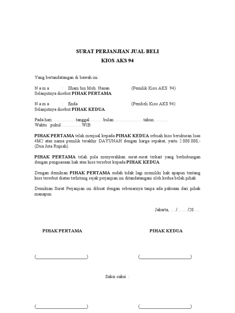 Contoh Surat Perjanjian Sewa Ruko Kios Pdf Doc Lamudi