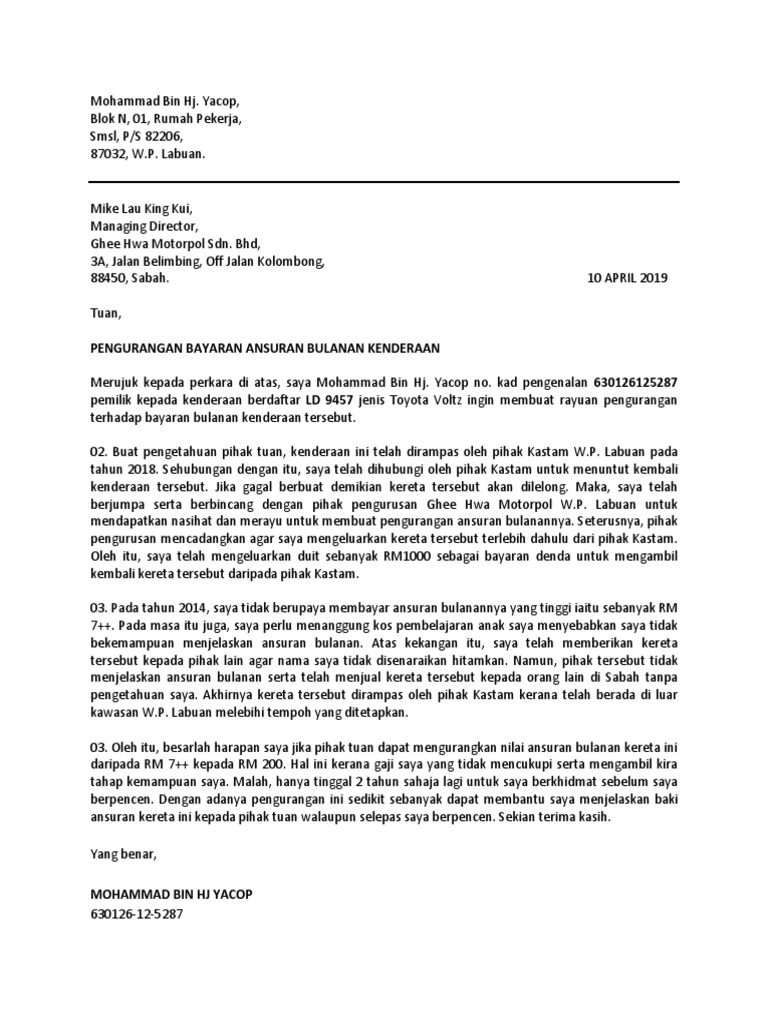Contoh Surat Rayuan Pengurangan Bayaran Hutang Bank Cute766