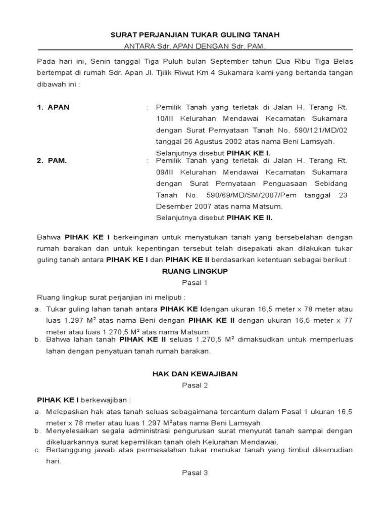 Surat Perjanjian Tukar Guling Tanah