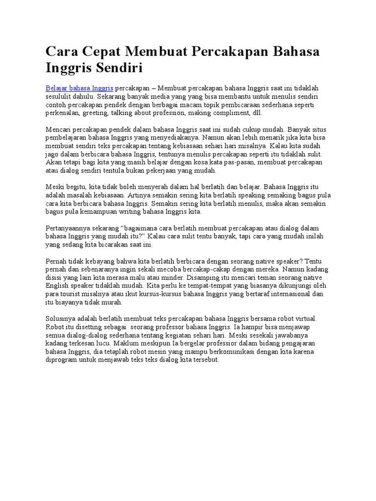 Cara Cepat Membuat Percakapan Bahasa Inggris Sendiri Doc