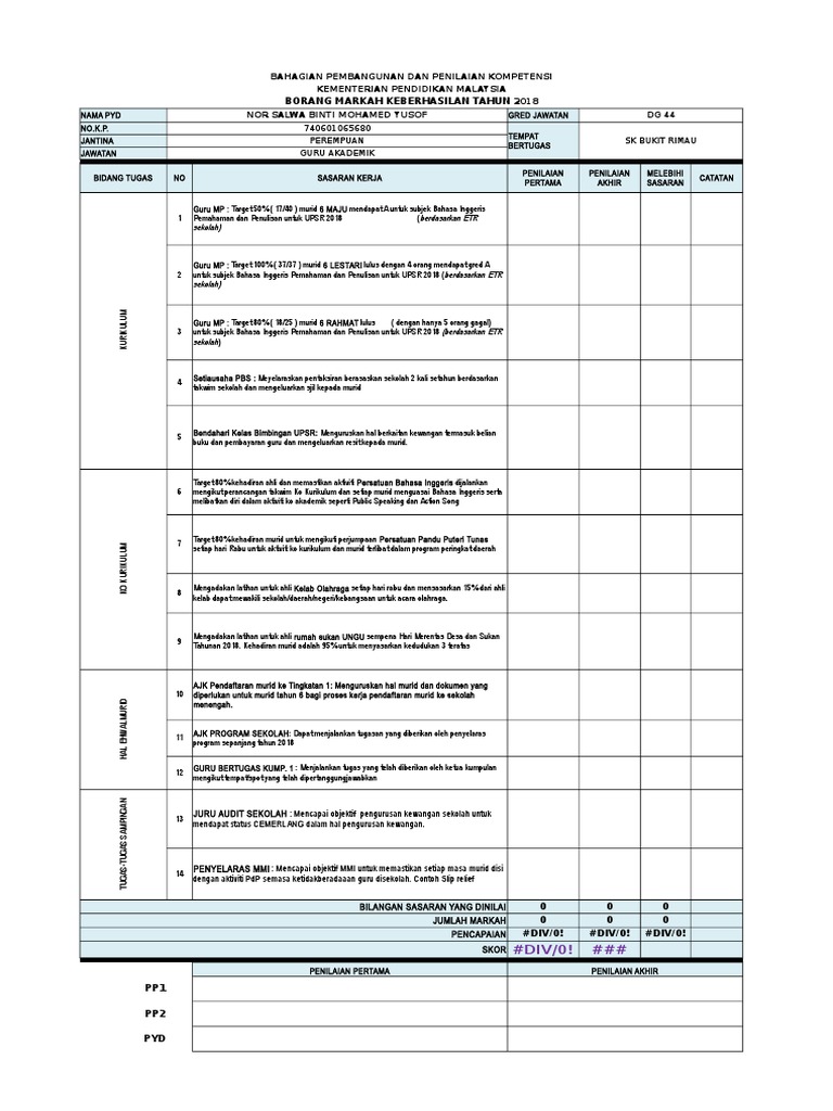 Borang Markah Keberhasilan Tahun