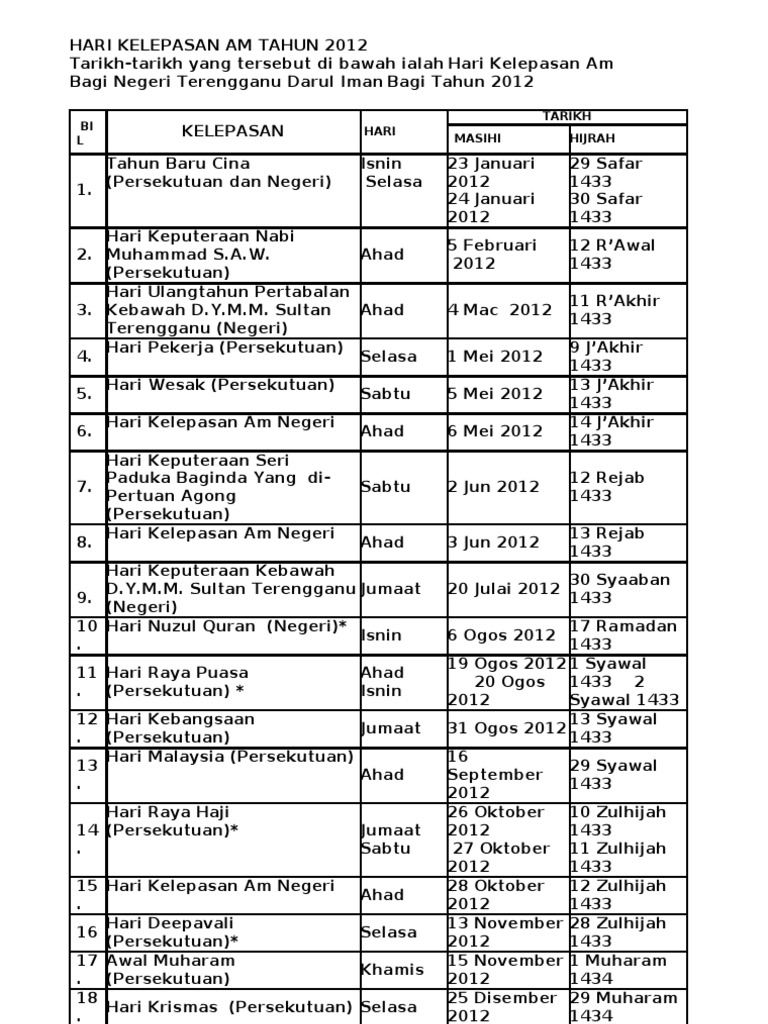 Makluman Umum Hari Kelepasan Am Bagi Kerajaan Negeri Terengganu Facebook