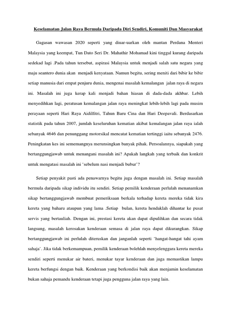 Karangan Docx Langkah Langkah Mengurangkan Kemalangan Jalan Raya Langkah Yang Boleh Dilakukan Untuk Mengurangkan Kemalangan Jalan Raya Adalah Dengan Course Hero