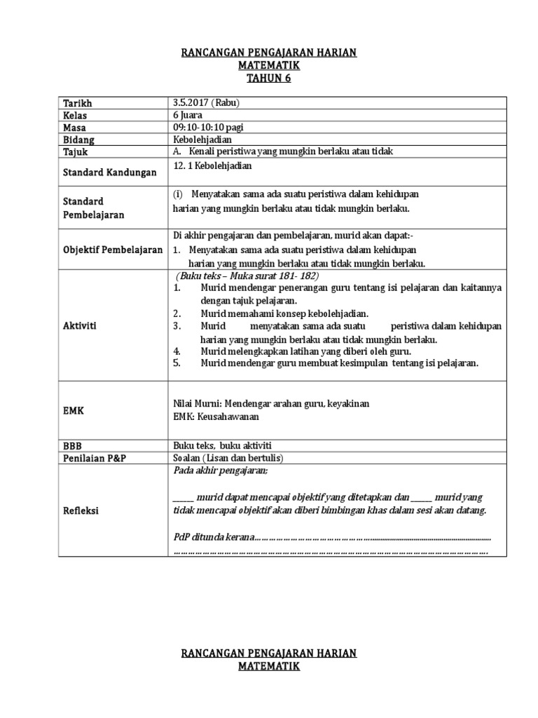 Kebolehjadian Matematik Tahun 6