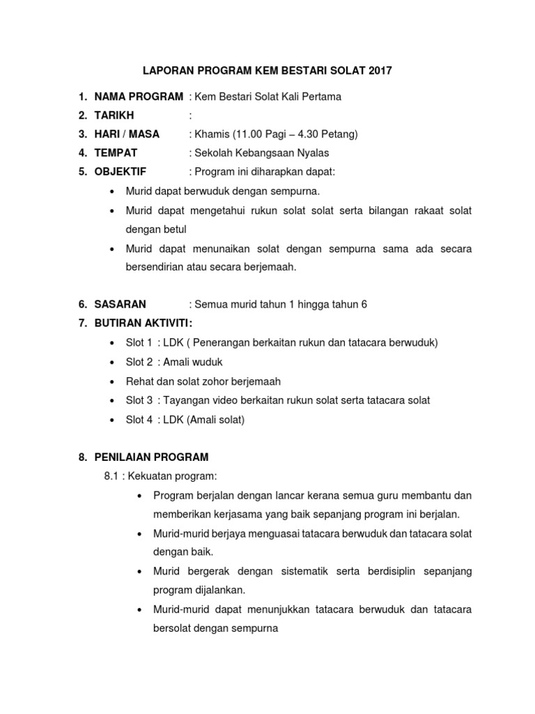 Laporan Program Kem Bestari Solat 2017 Docx