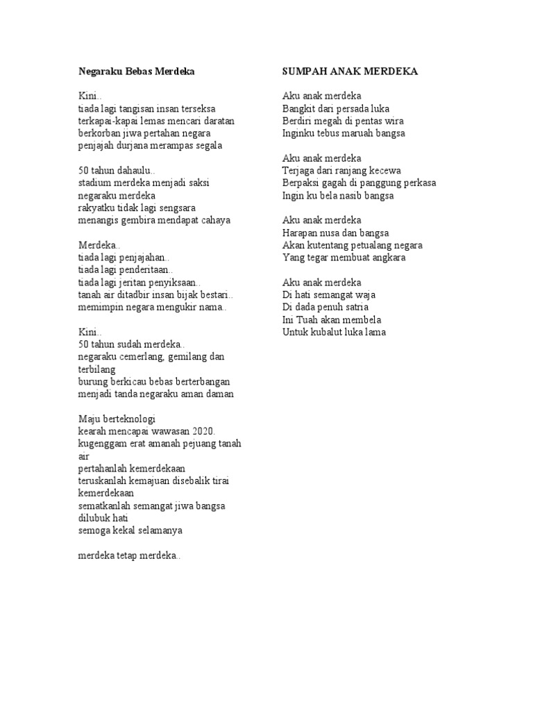 Sajak Docx Pertandingan Menulis Pantun Sajak Aku Anak Merdeka Aku Anak Merdeka Dilahirkan Di Bumi Yang Aman Dan Sentosa Ini Malaysia Namanya Aku Course Hero