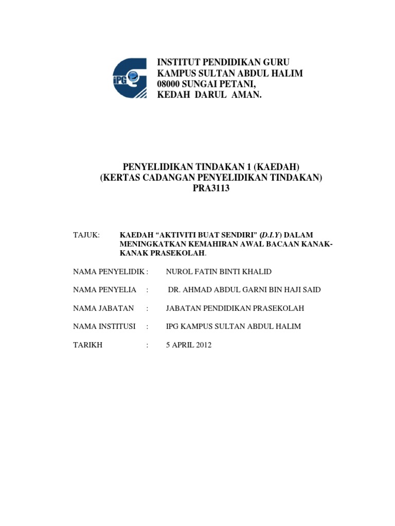 Pdf Kertas Cadangan Proposal Kajian Tindakan Ben Lau Academia Edu