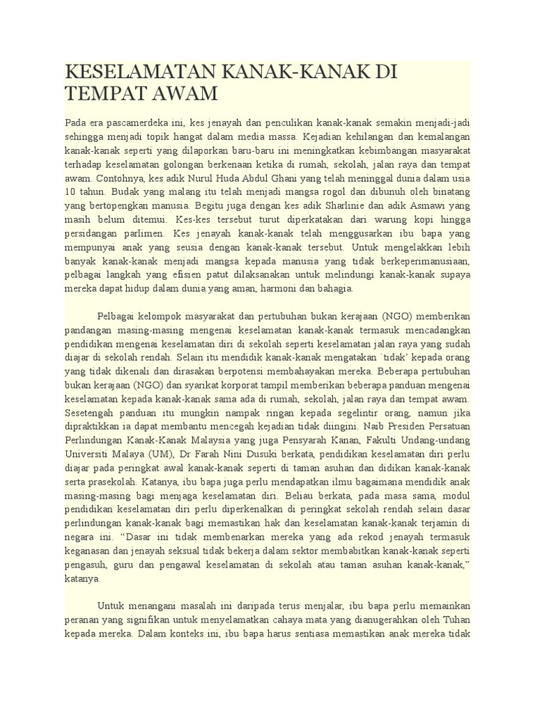 Keselamatan Kanak Kanak Tanggungjawab Bersama Rencana