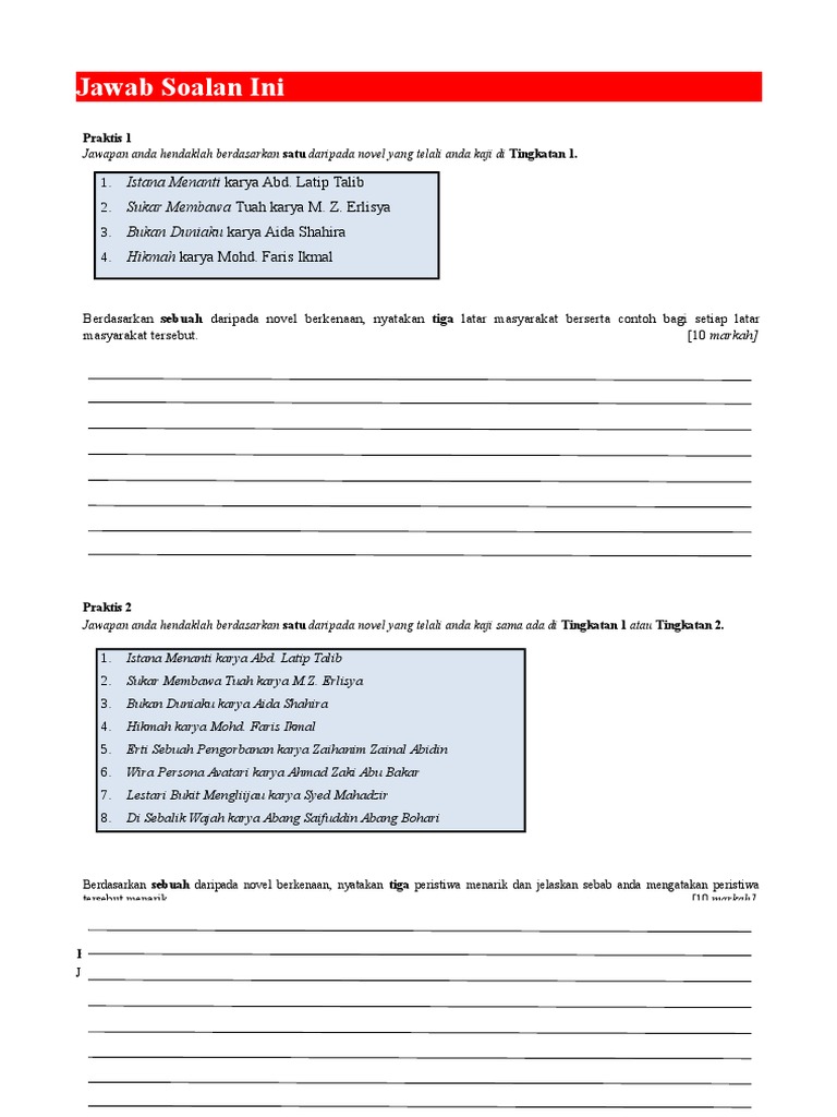 Latihan Komsas Tingkatan 1