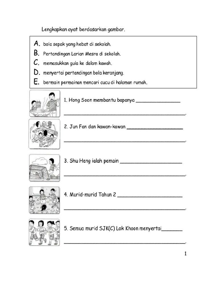Contoh Lembaran Kerja Program Pendidikan Khas Integrasi Bahasa Melayu