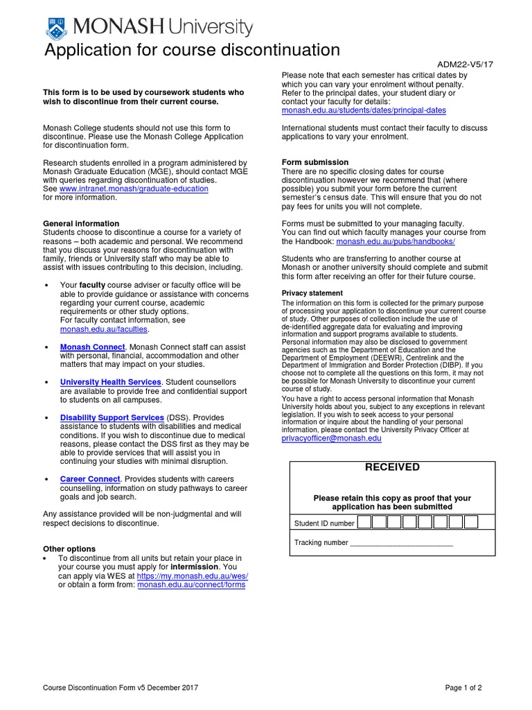 Application For Course Discontinuation Monash Edu Au Students Dates Principal Dates Personally Identifiable Information Privacy