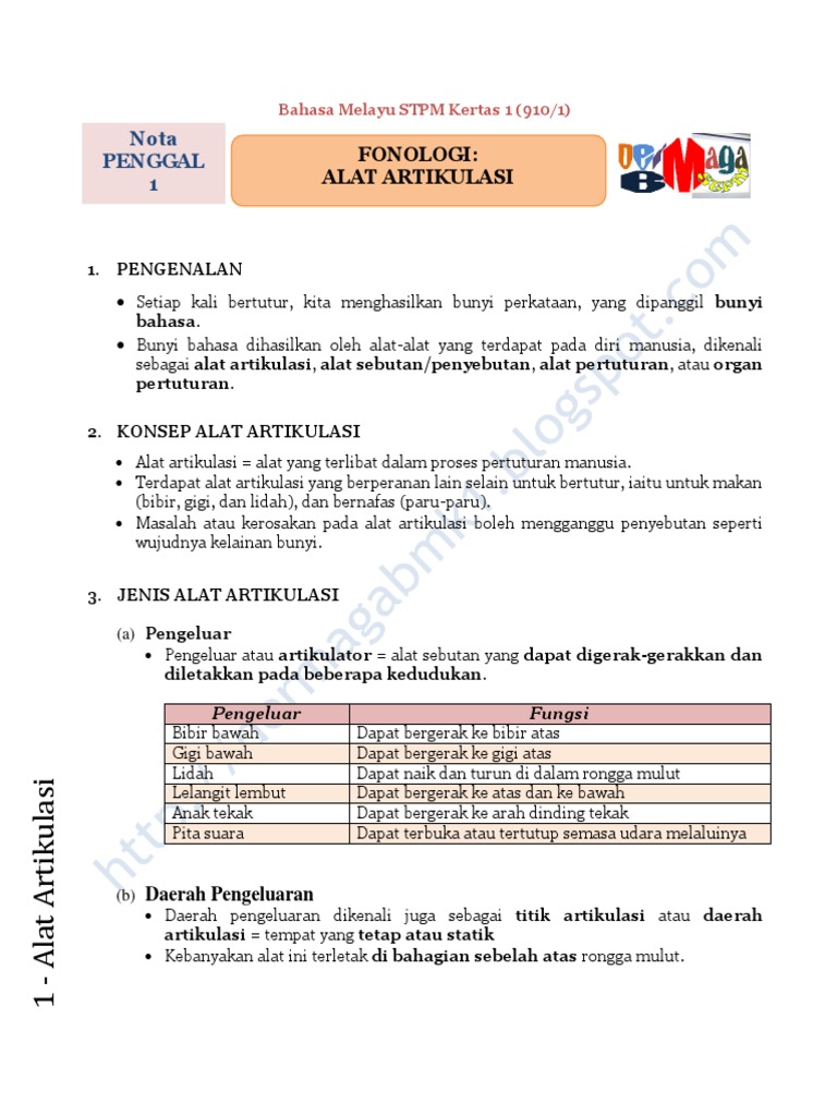 Fonologi Alat Artikulasi Nota Penggal 1