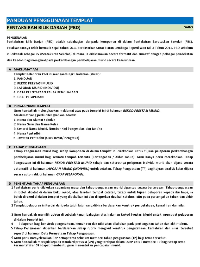 Panduan Penggunaan Templat Pelaporan Pentaksiran Bilik Darjah Pbd Education Guru