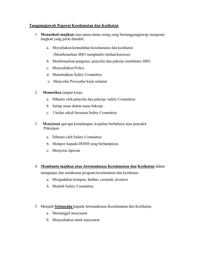Kewajipan Pegawai Keselamatan Dan Department Of Occupational Safety And Health Facebook