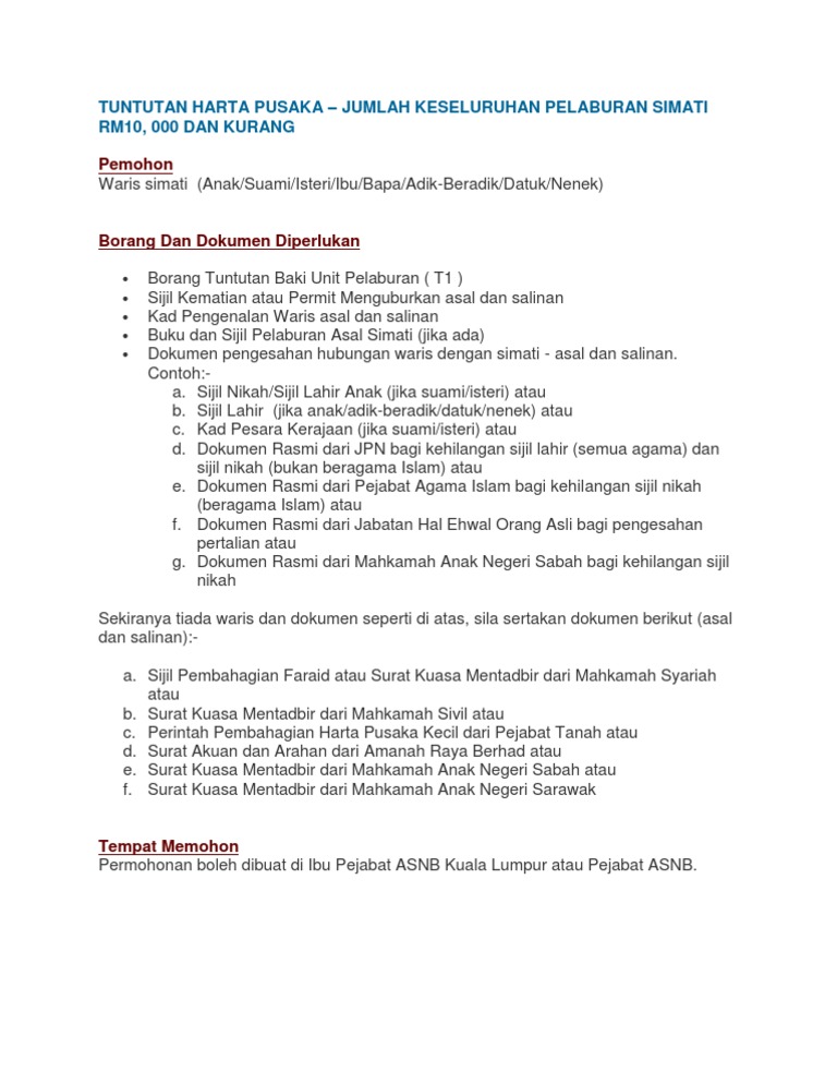 Tuntutan Harta Pusaka Asnb