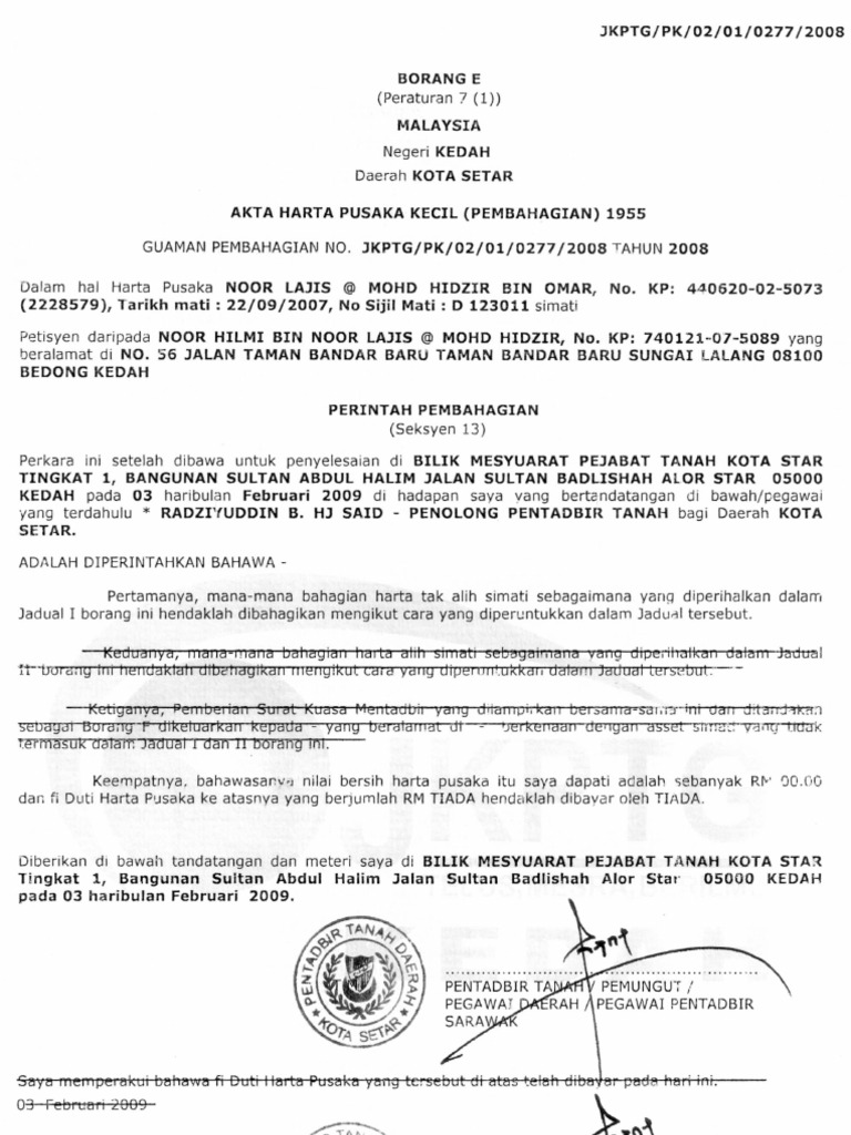 Pembahagian Harta Pusaka Kecil