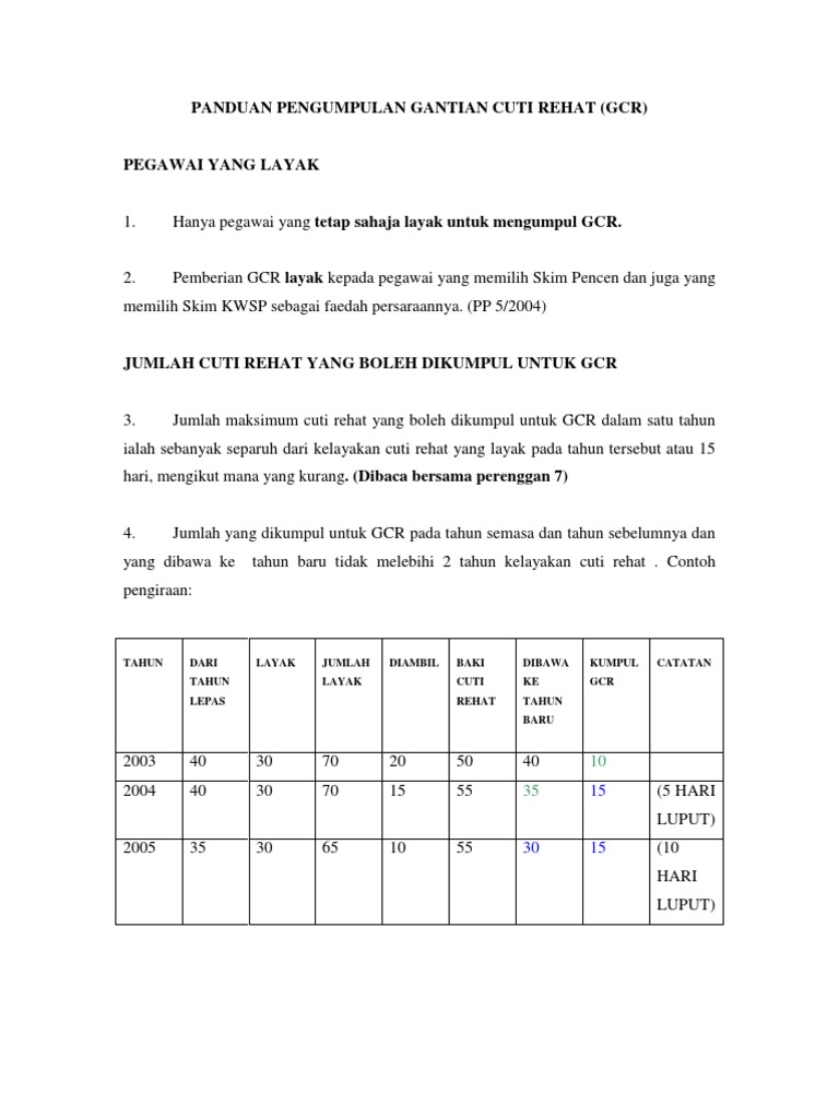 Garis Panduan Award Wang Tunai Gantian Cuti Rehat Gcr Pdf Free Download