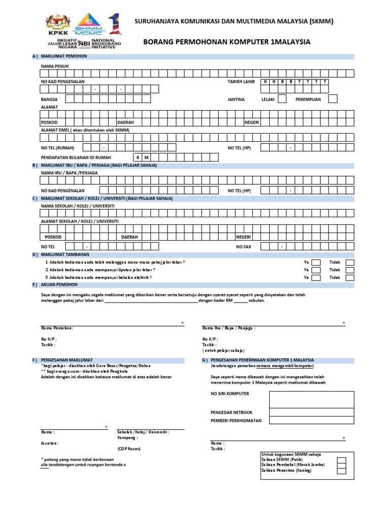 Borang Permohonan Komputer 1malaysia Fasa 2 Final