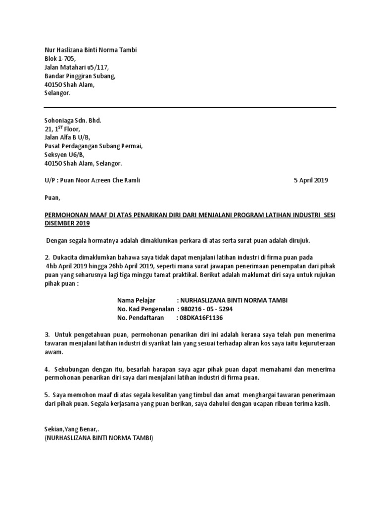 Latihan Industri Fuu Surat Penerimaan Daripada Balai Polis Firma Guaman Jabatan