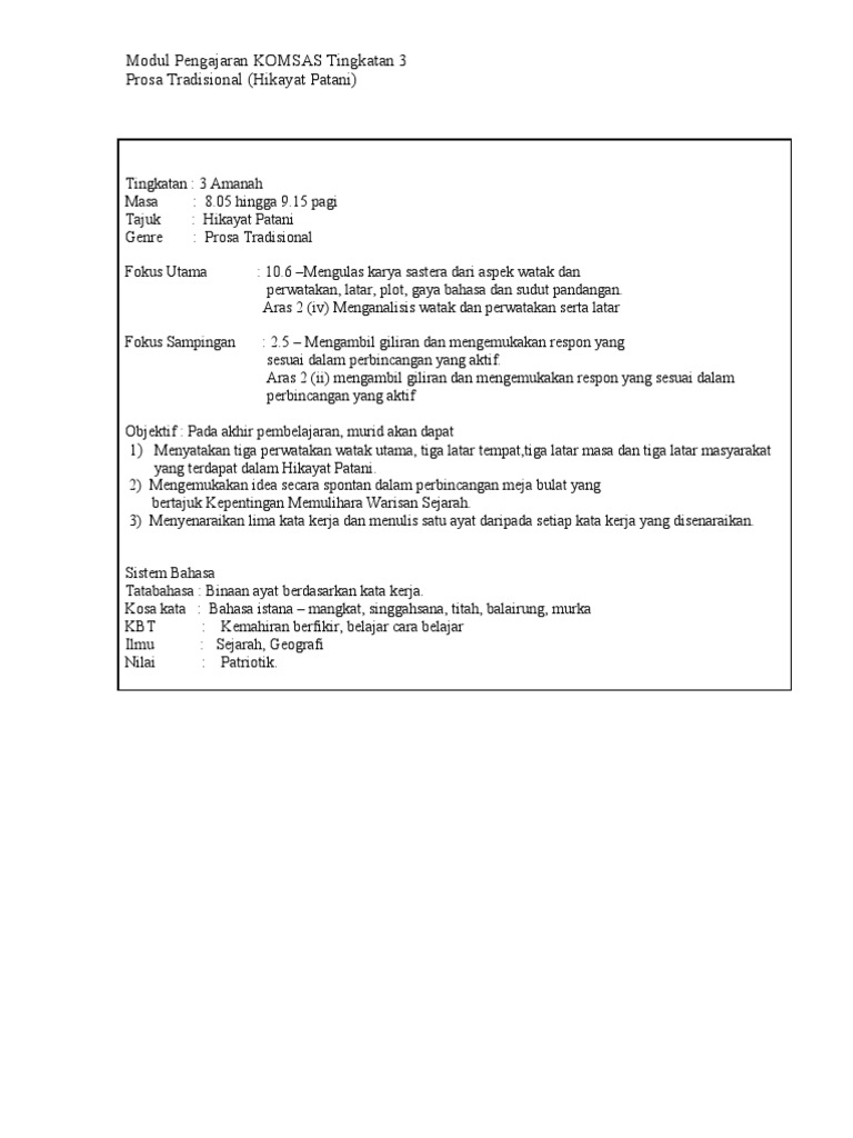 Komsas Dua Geliga Hikmat Dirgahayu Bahasaku Prosa Tradisional Form 5