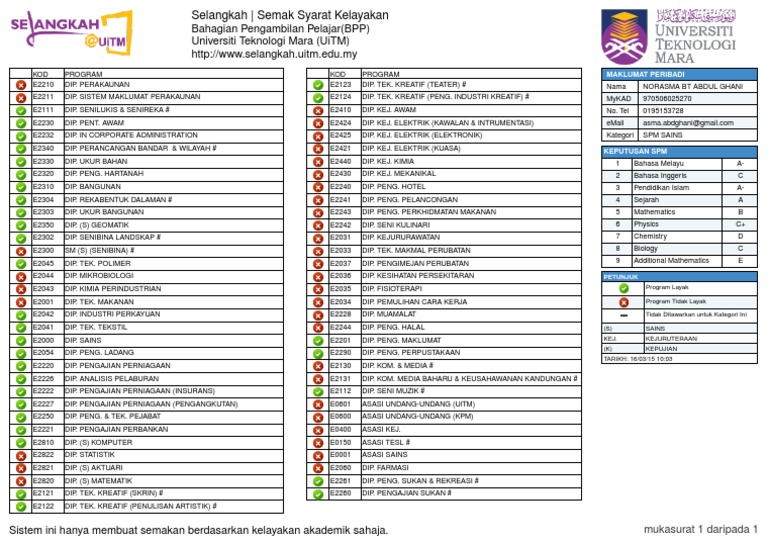 Semakan Syarat Kelayakan Uitm Online Selangkah Uitm Info Upu