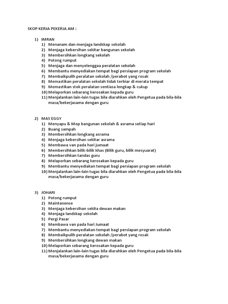 Contoh Sk Tenaga Pesuruh Tenaga Kebersihan Dan Tukang Kebun