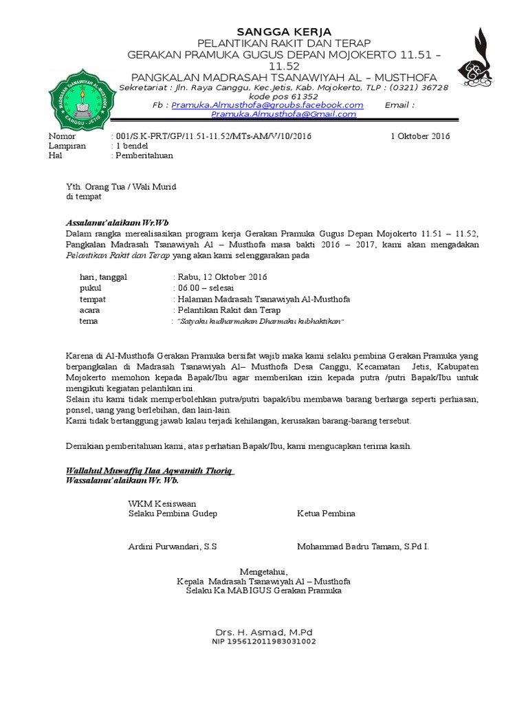 Administrasi Surat Pelantikan Pramuka Penggalang