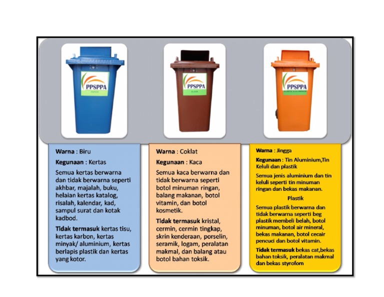 Jenis Jenis Tong Sampah Dan Warna Serta Fungsinya Perda Ekosistem Kondusif Sektor Awam Eksa