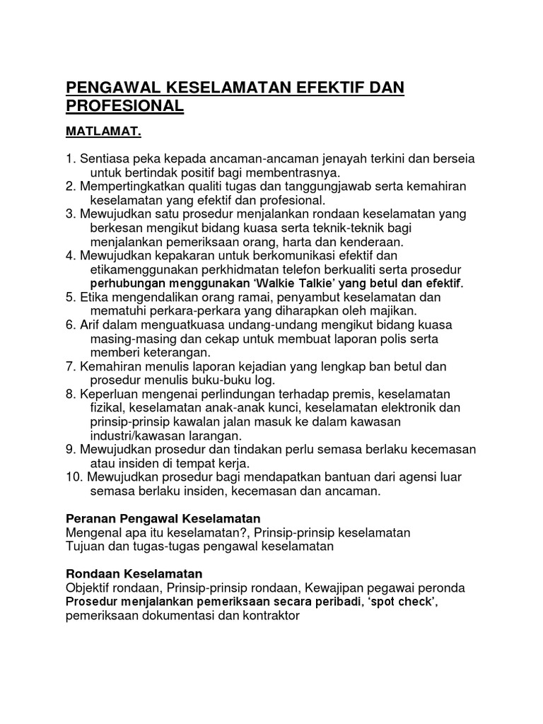 Pengawal Keselamatan Efektif Dan Profesional