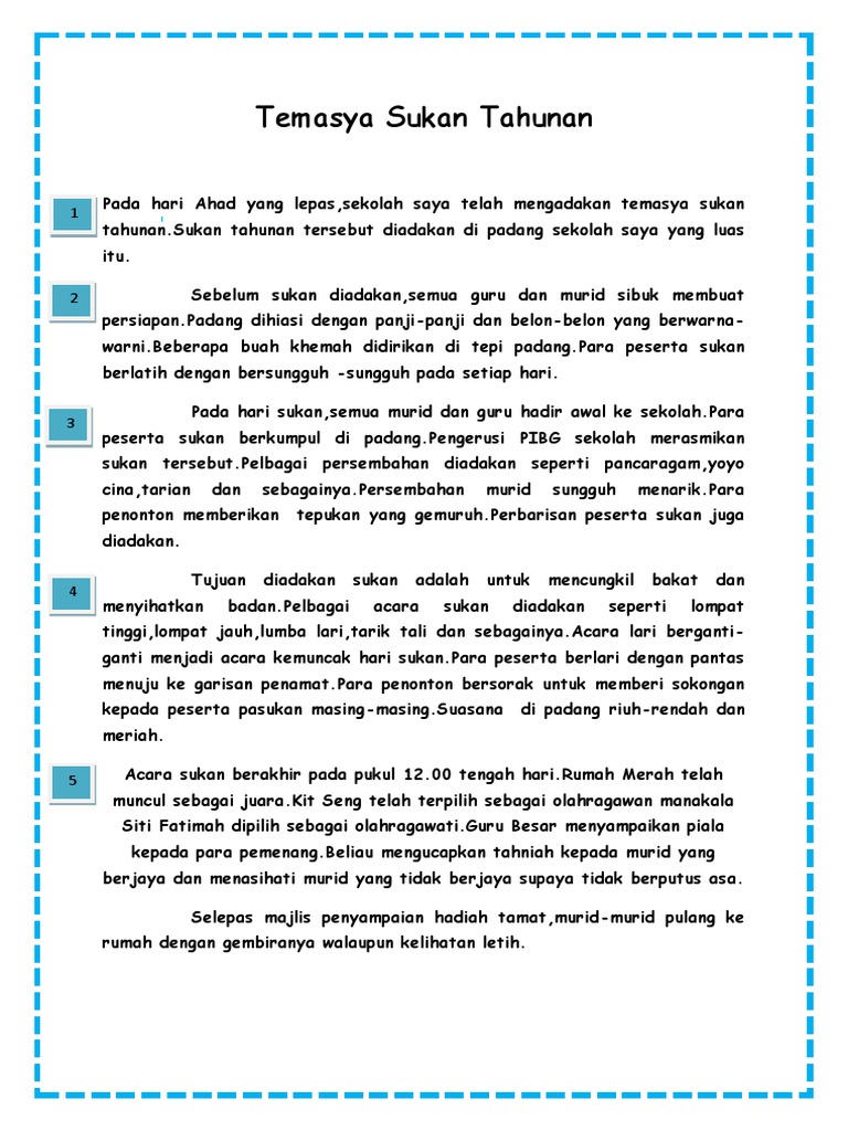 Sudut Bm Cikgu Tan Contoh Karangan 5 Temasya Sukan Tahunan Sekolah