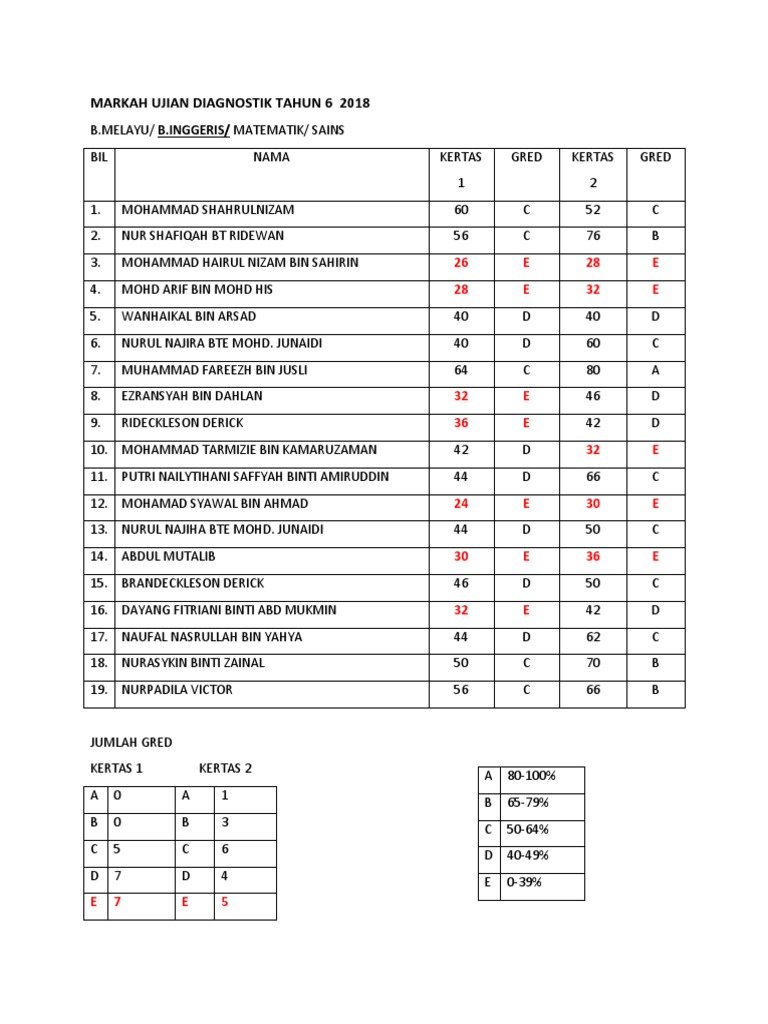 Contoh Analisis Ujian Diagnostik Matematik Tahun 6